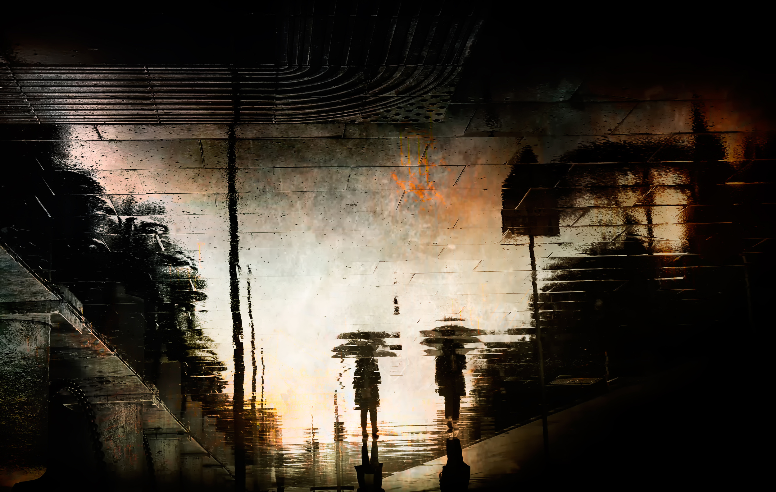 These textures make the image feel like a memory seen through a wet, imperfect surface.