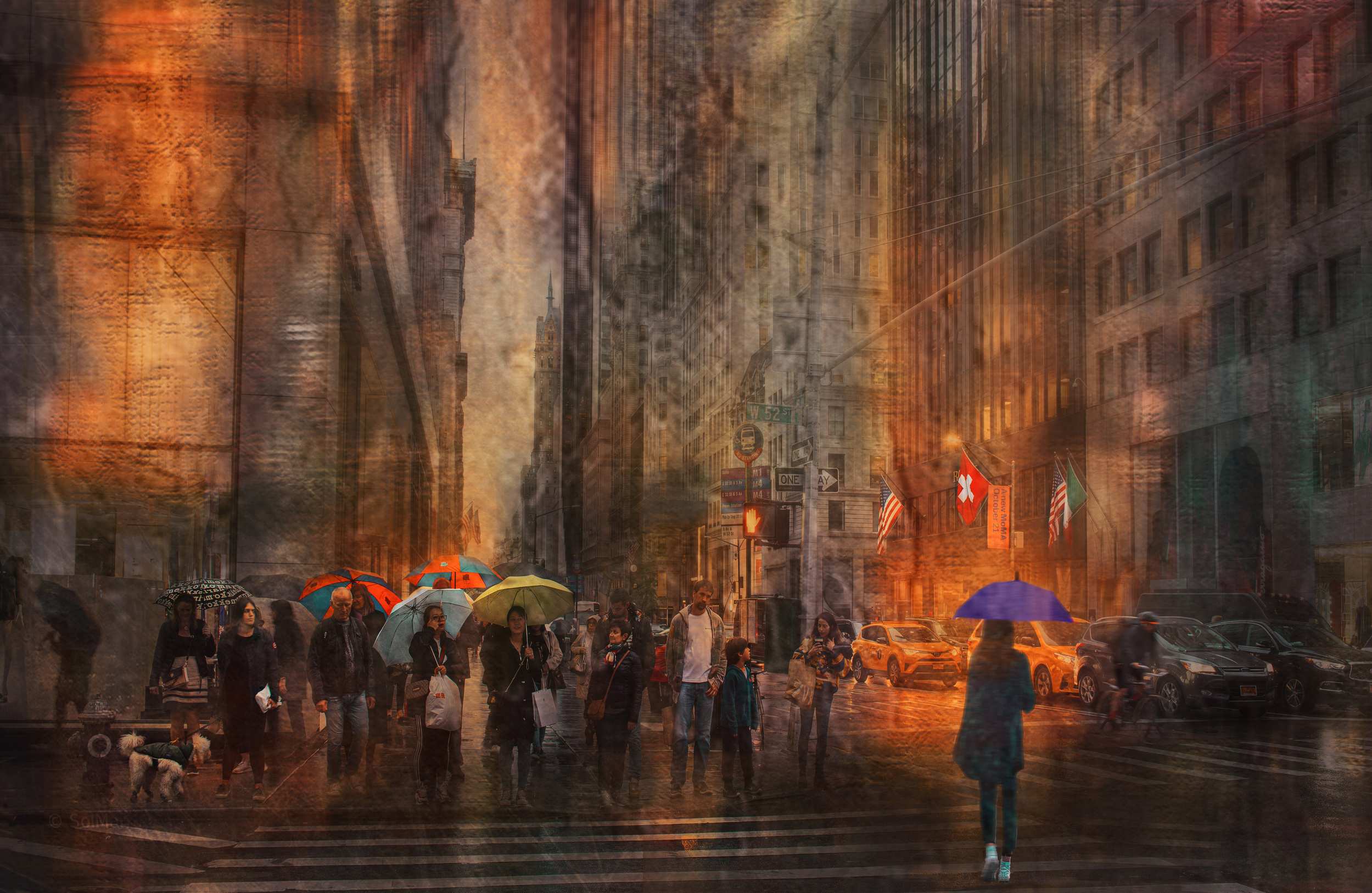 I was out walking with no particular destination in mind, simply enjoying the way the rain was softening the lights and reflections around me.