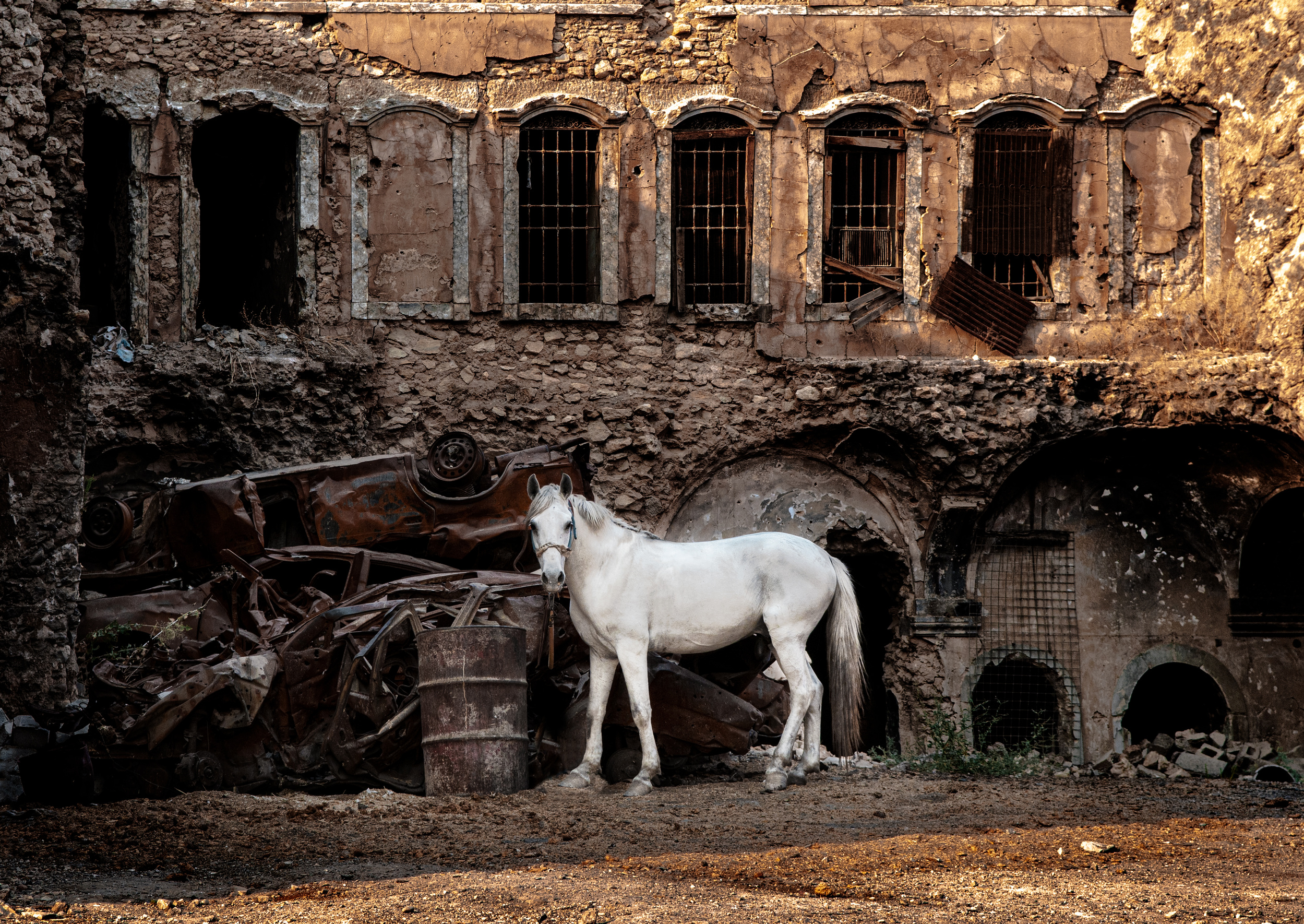 “White horse in a war zone” by Saad Salem